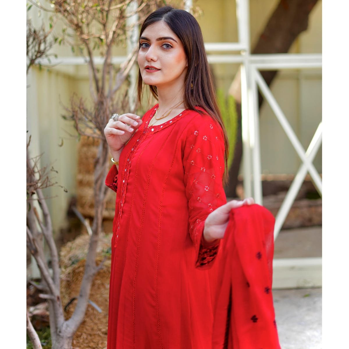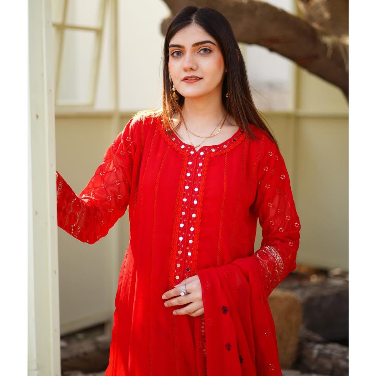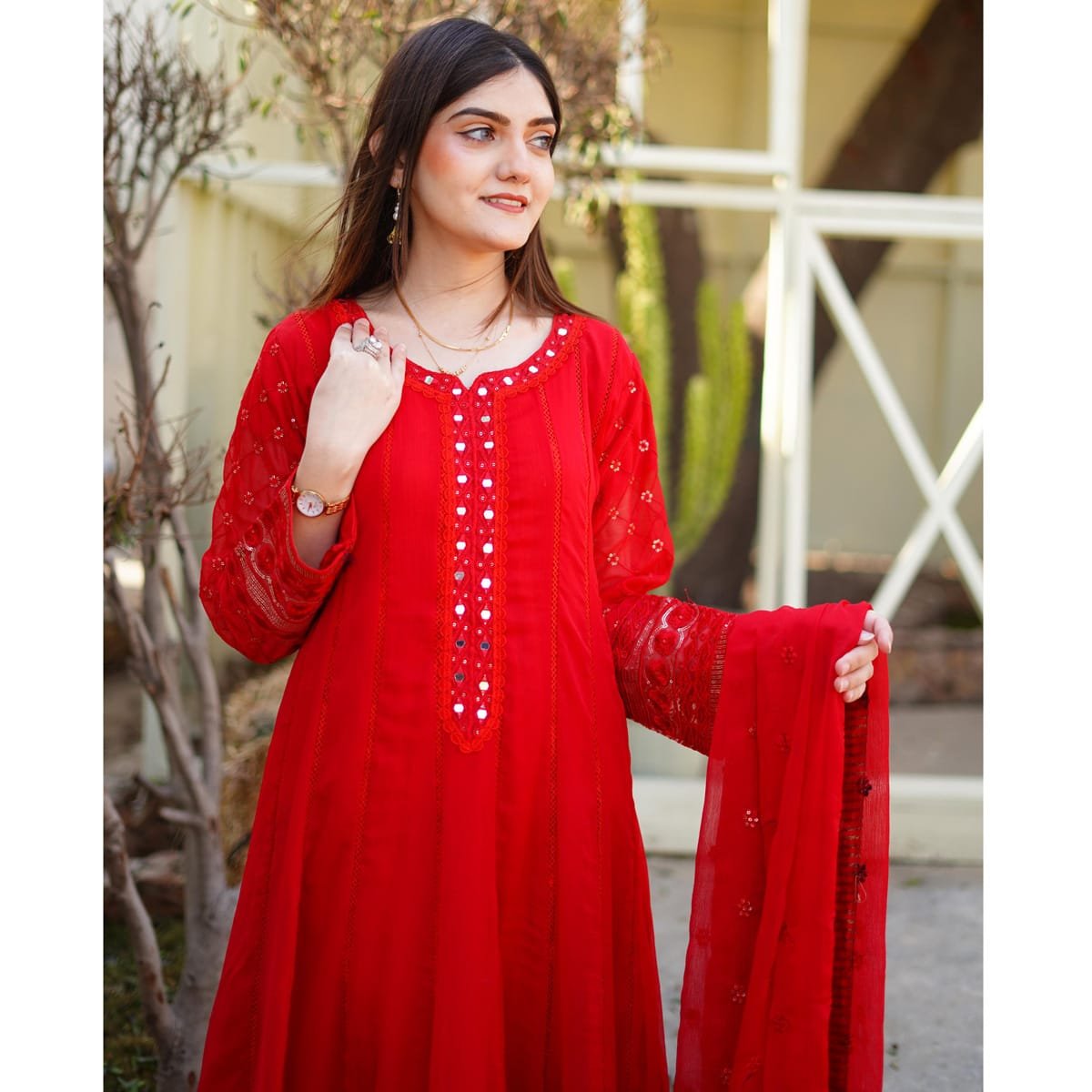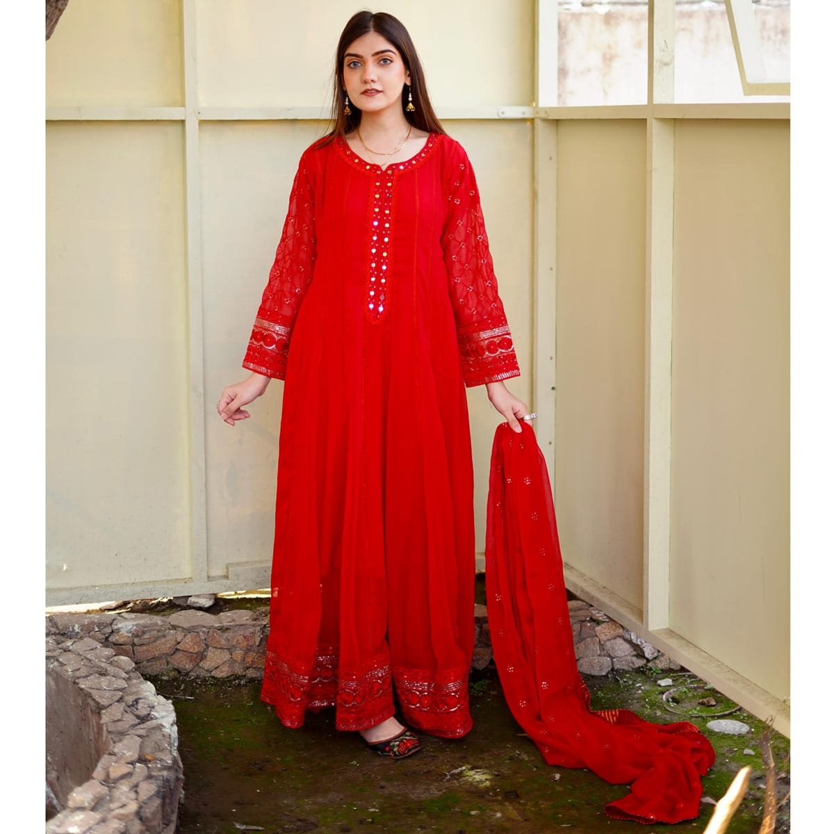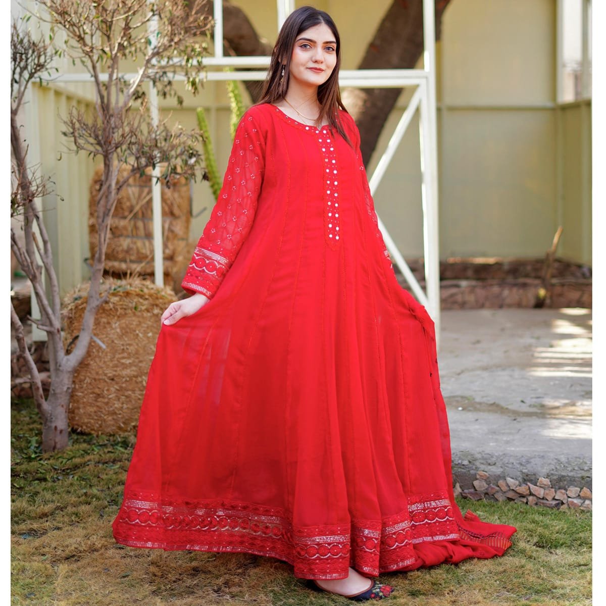Stitched Mirror Neck, Sleeves & Border Embroidered Maxi
