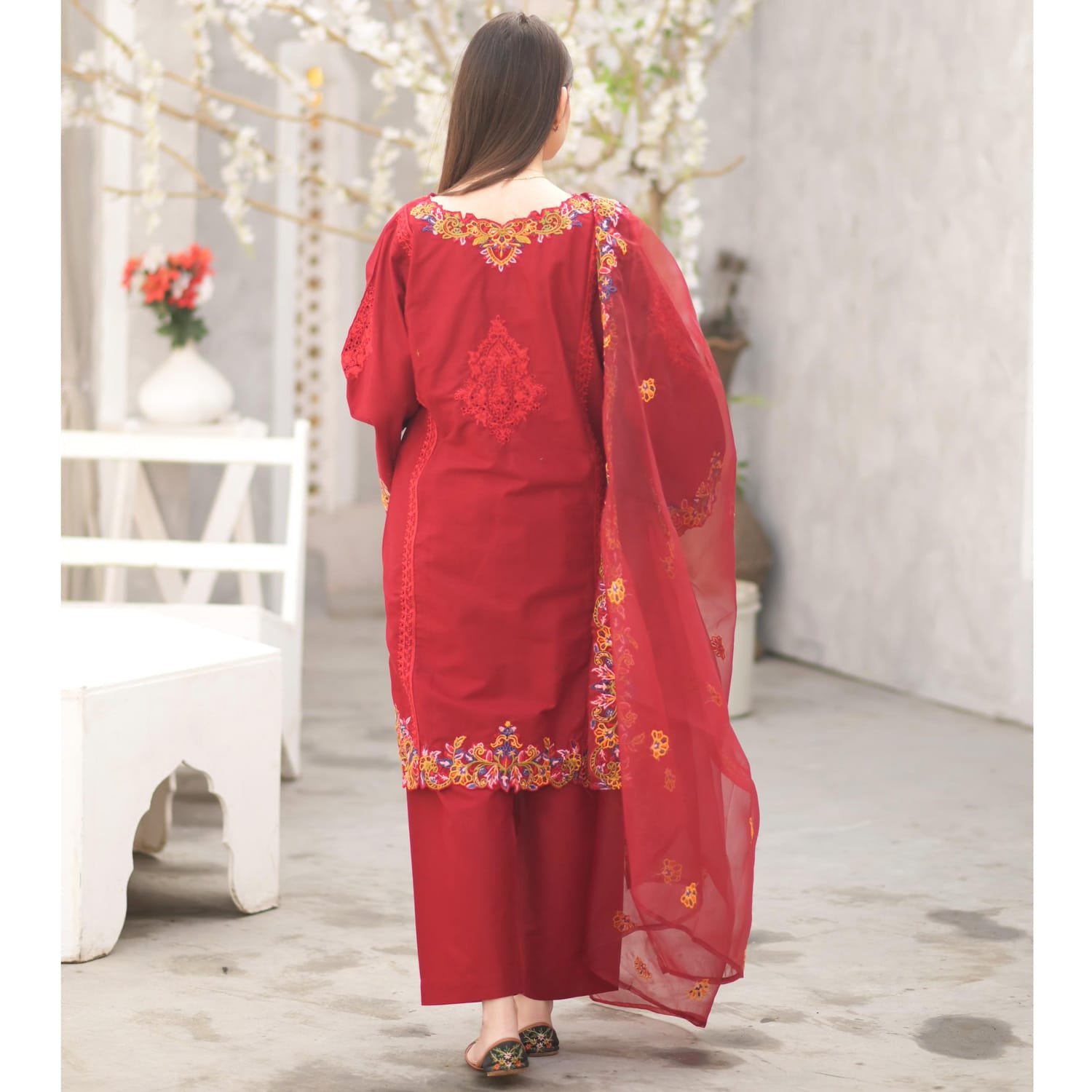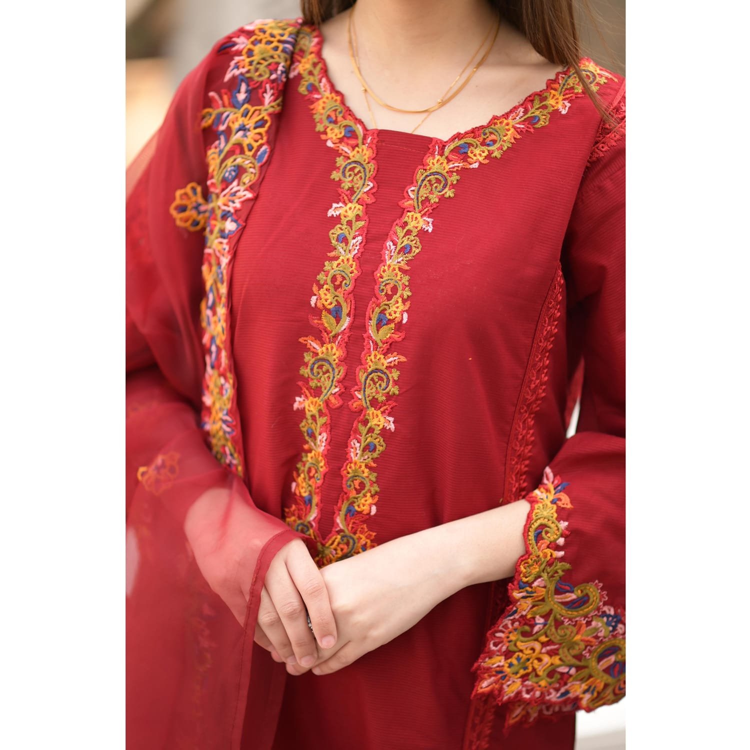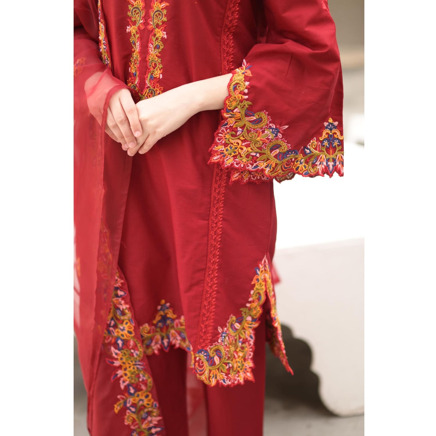 Embroidered Dupatta, Plain Trouser